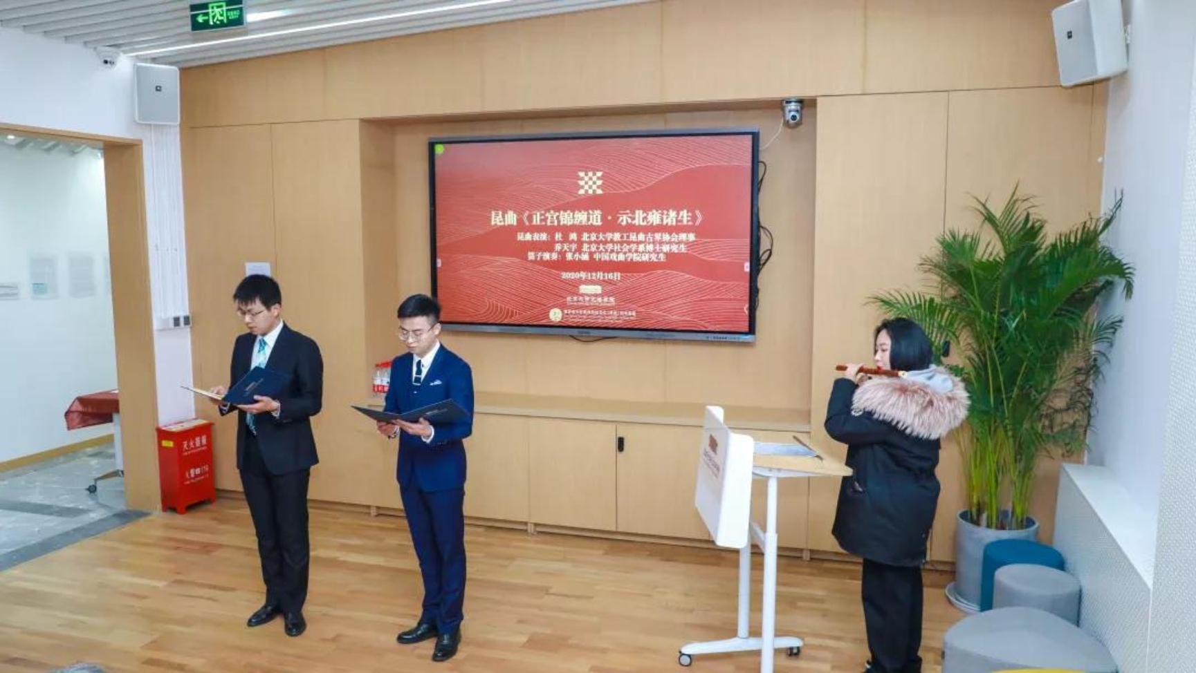 在发言之后,与会嘉宾与同学们一同欣赏精彩的古琴与昆曲表演。欧美大片ppt免费大全教工昆曲古琴协会理事杜鸿老师、欧美大片ppt免费大全社会学系博士研究生乔天宇、中国戏曲学院研究生张小涵表演昆曲《[正宫]锦缠道·示北雍诸生》。其后,中国昆剧古琴研究会会员、欧美大片ppt免费大全教工昆曲古琴协会副秘书长兼传习部部长李阳老师为大家带来古琴曲《平沙落雁》。昆曲之清丽婉转、古琴之沉静古拙为同学们留下了深刻印象,余音袅袅不绝,令同学们沉浸其中。在质朴的琴声中,开幕式圆满结束。